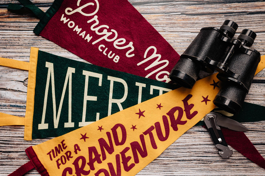 Material: Cut-and-sewn wool felt, screen-printed design. Made in USA by Oxford Pennants for The Proper Mountain Woman Club.